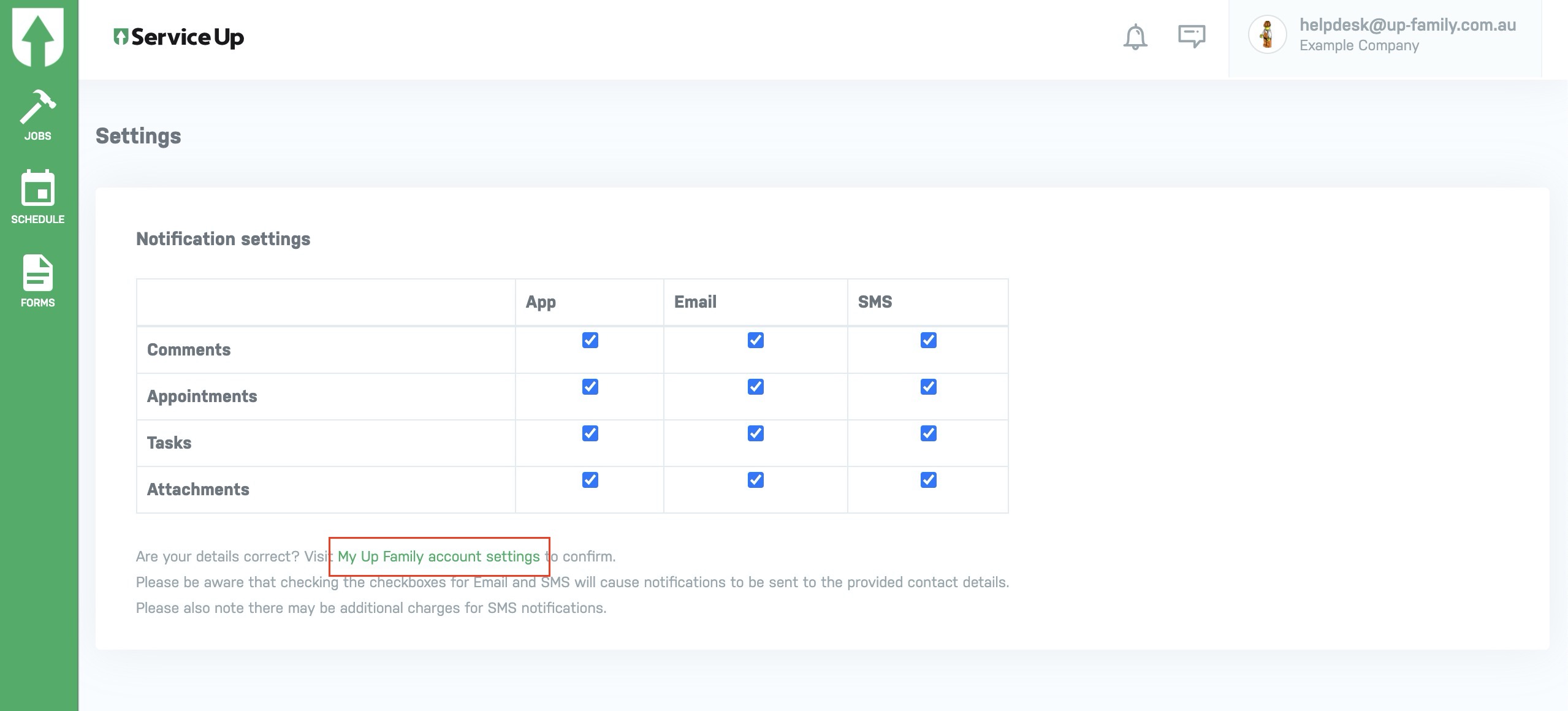 Change Notification settings anytime you want in Service Up