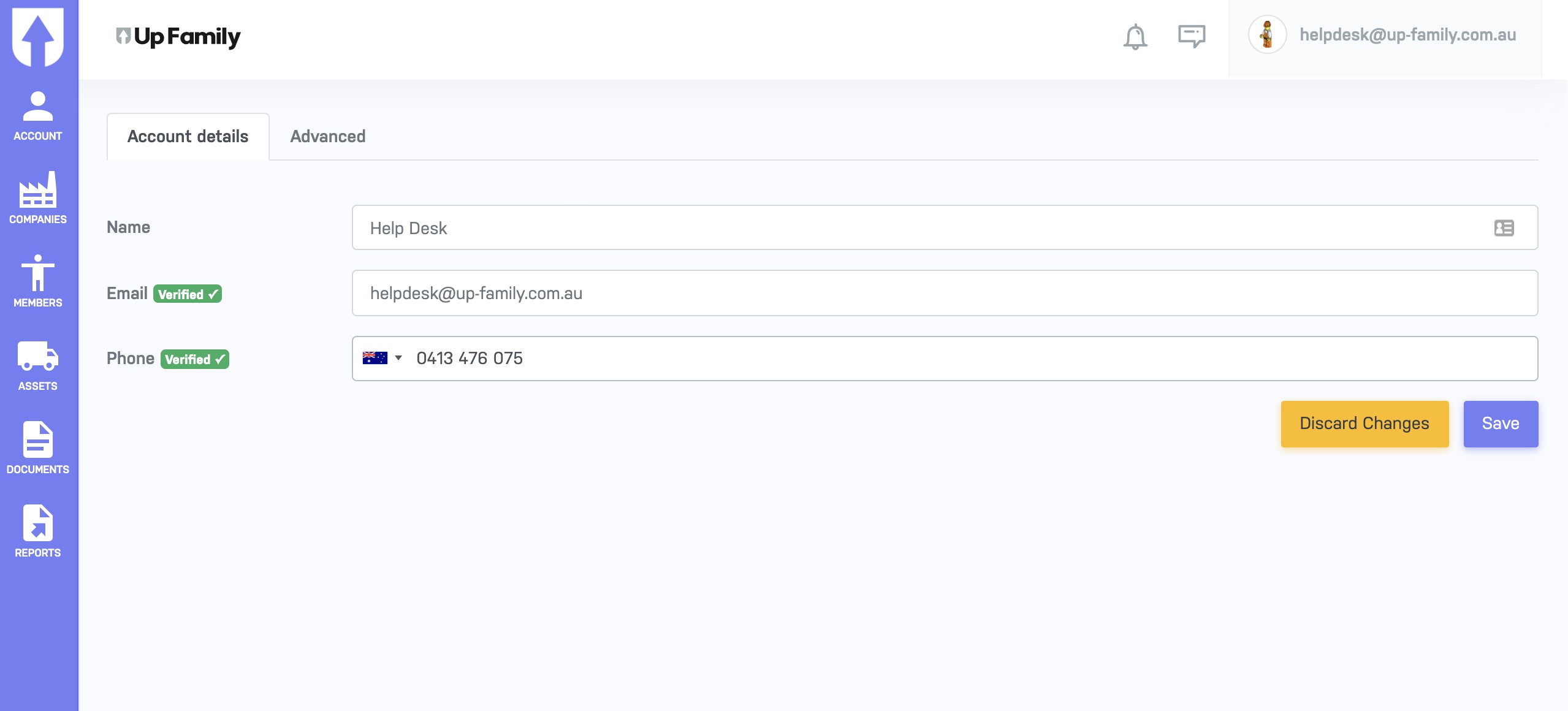 7. This will take you to UpFamily dashboard where you can update Name, Email and Phone.