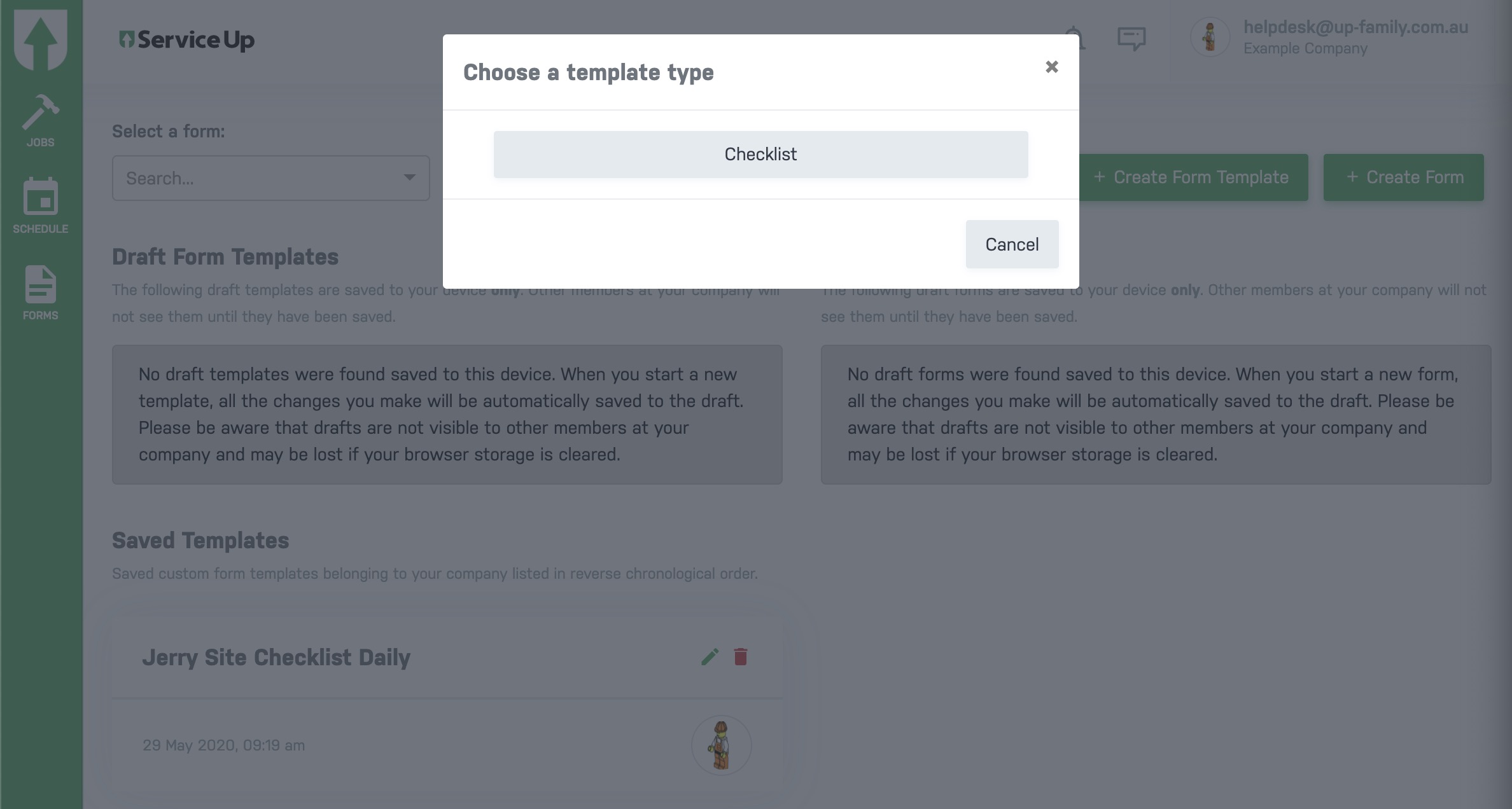 3. In Service Up dashboard, click on Forms present on the left hand panel.