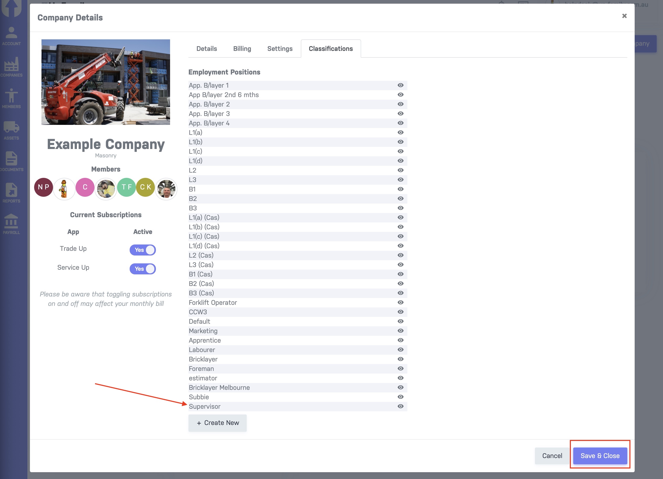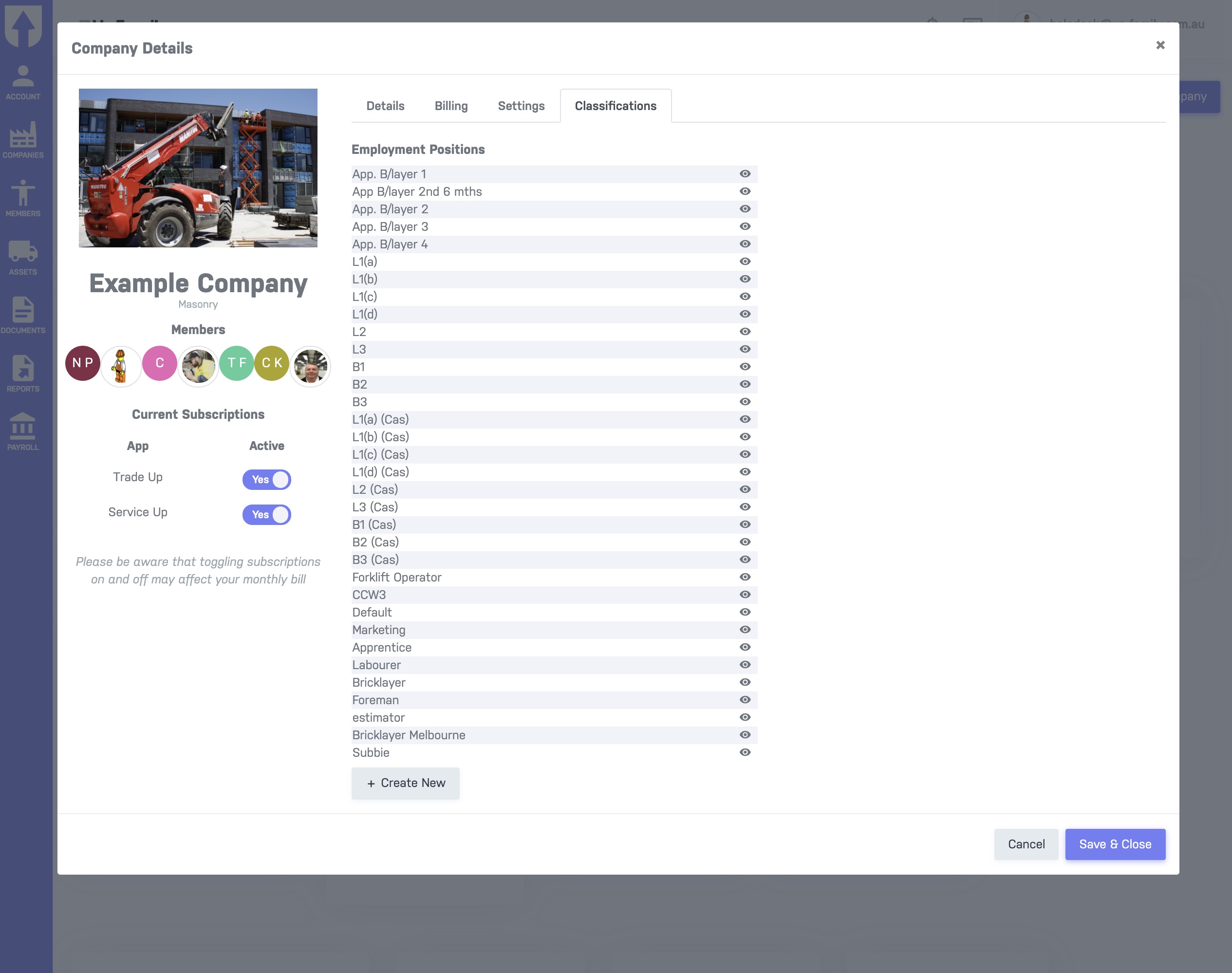 The Up Family provides you with pre-filled Employment Positions in Classifications. However, you can create your own classifications or edit the existing one.